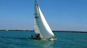 Én terveztem, de a sors másként döntött. A kellõ pillanatban Tibi nem tudta lehúzni a vásznat, a szél továbbra is lendületesen vitt minket a móló felé. A hátul bedobott horgony csak fékezte, de nem fogta meg a hajót. A nagy sebesség miatt Gyuri nem mert kiugrani a partra. A hajó jelentõs sebességgel futott neki a beton mólónak. Ki is tört a betonból egy darab. Még szerencse, hogy ennek a típusnak ilyen kemény az eleje. A hajón némi karcoláson kívül nem látszott más sérülés.